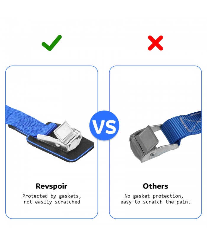 Revspoir Tie Down Straps Ratchet New Version with Gasket, 3x2.5cm 250kg Heavy Duty Lashing Straps, Adjustable Retaining Straps Tensioning Belts with Buckle for Vans, Motorcycle, Trucks, Luggage, Cargo